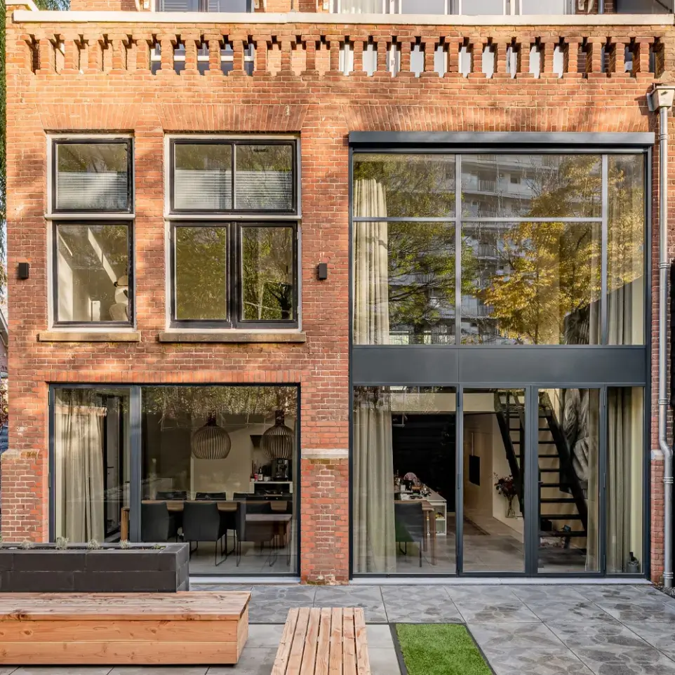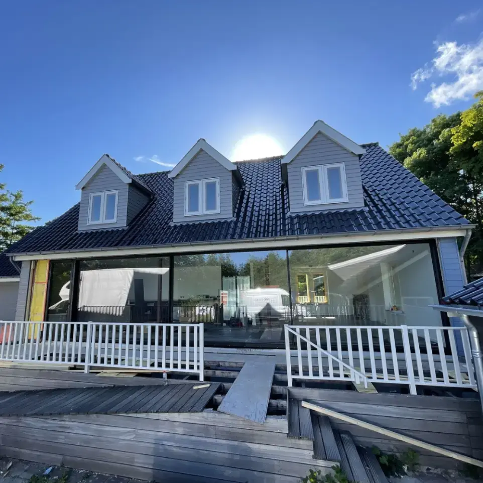 Een stijlvol huis verrijkt met een modern schuifsysteem. Innovatie en functionaliteit die naadloos samensmelten met tijdloze traditie.