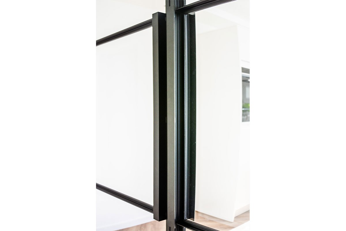 Our steel, black double door fits to this concept perfectly. Slim, but strong frames makes those doors looks light and elegant.